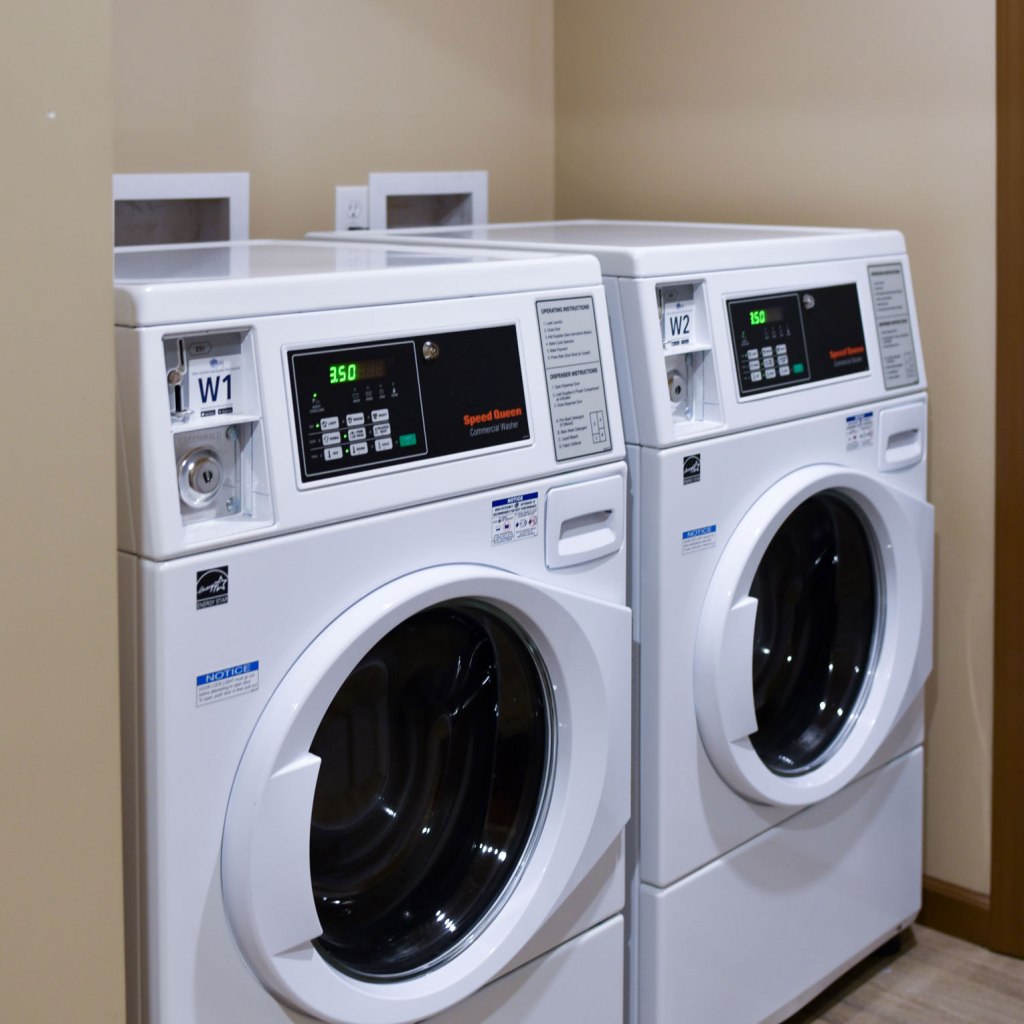 We have a laundry room on location fully equipped with top-of-the-line washing and drying Speed Queens for a small fee. They accept quarters or credit.